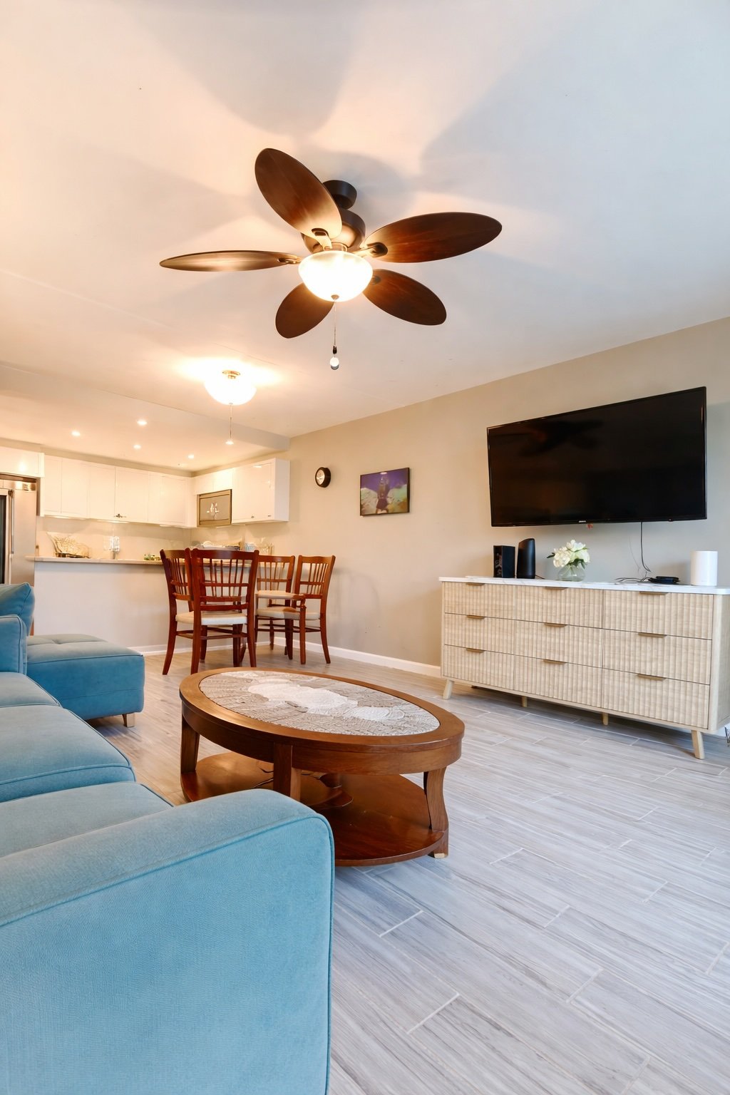 For outdoor activities, the unit is equipped with beach chairs, beach towels, a cooler, and a beach cart for all your beach equipment.